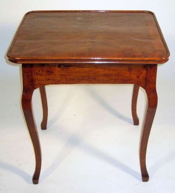 The quarter veneered crossbanded rectangular dished top, raised on slender cabriole legs.