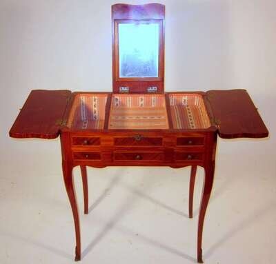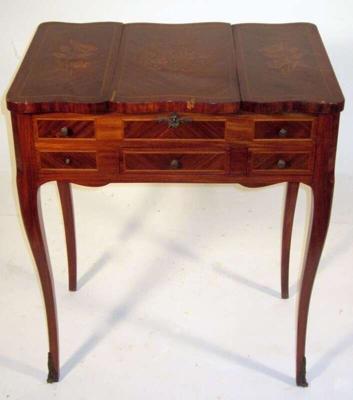 Louis XV style kingwood, tulipwood, and marquetry inlaid ladies vanity table 19th century