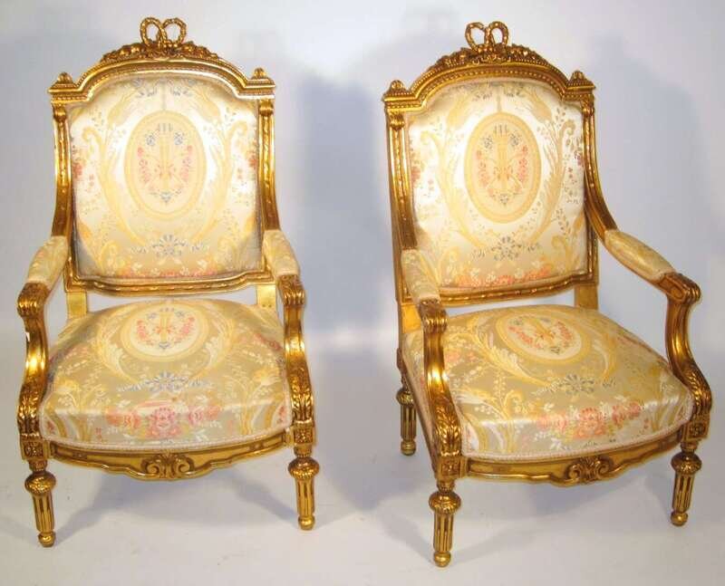 Pair of Louis XVI style giltwood armchairs