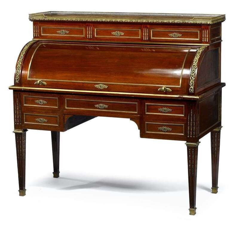 Louis XVI style brass mounted mahogany bureau a cylindre late 19th century