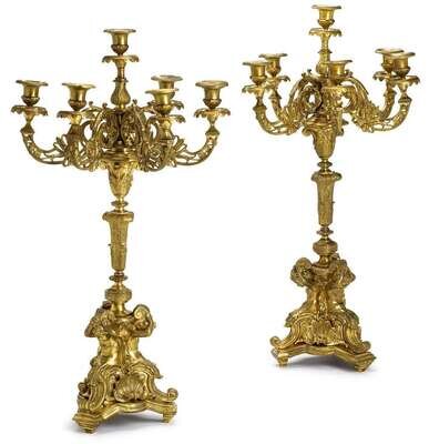 Pair of Louis XV style gilt bronze six-light candelabra 19th century