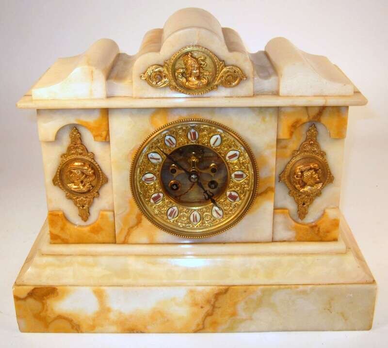 Continental marble, onyx, and gilt brass mantle clock late 19th century