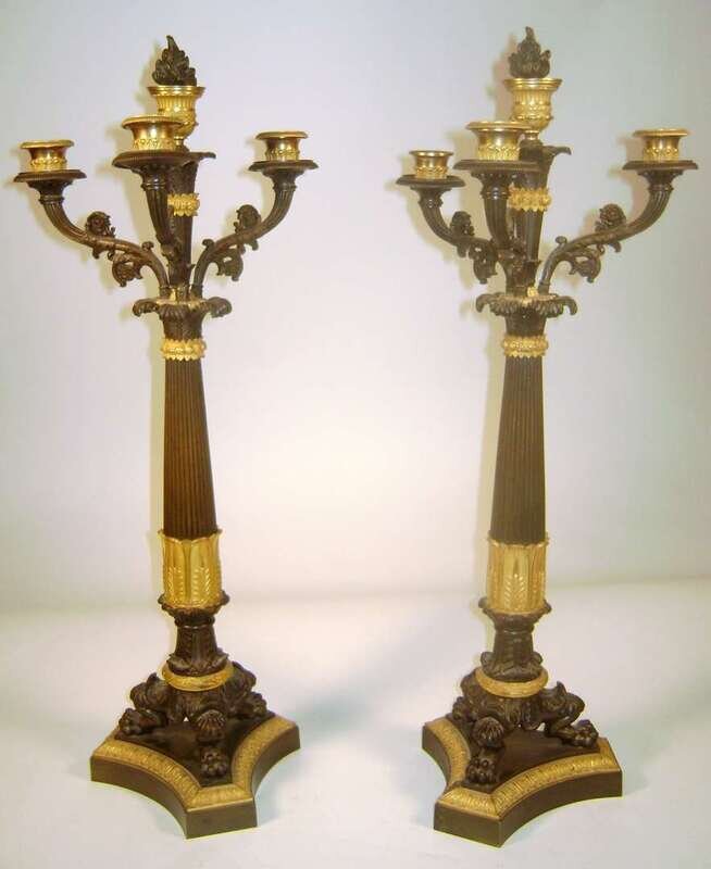 Pair of French Empire gilt and patinated bronze candelabra 19th century