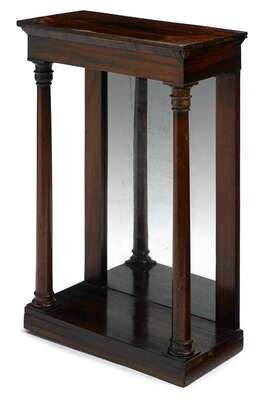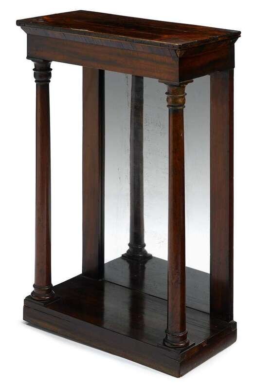 The rectangular top raised on two full columns with mirrored back, raised on rectangular base.