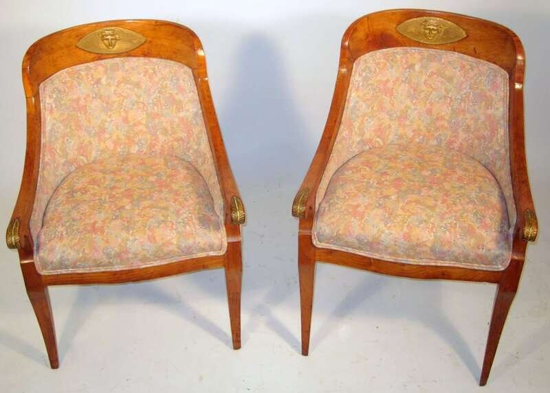 Pair of Empire style beech armchairs late 19th century