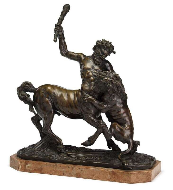 Thomas Campajola (Italian, fl. late 19th/early 20th century) centaur battling a lion