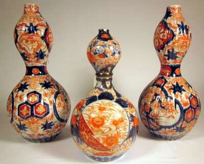 Pair of Japanese Imari porcelain double-gourd vases