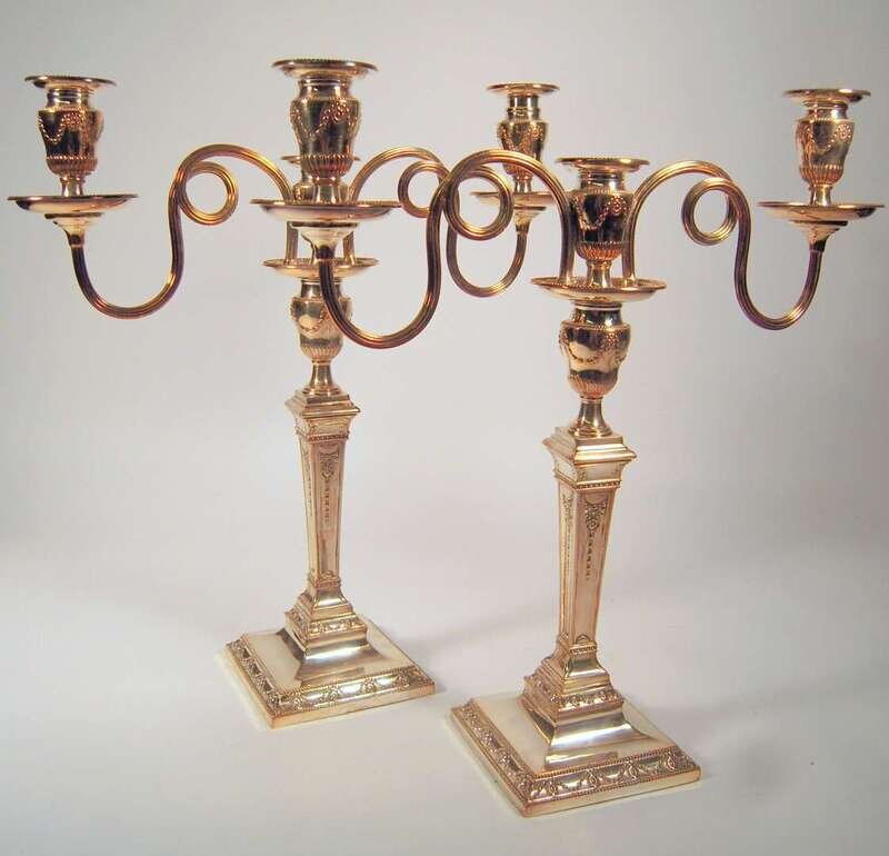 Pair of Victorian silverplated three-light candelabra hawksworth, eyre & co., sheffield, late 19th century