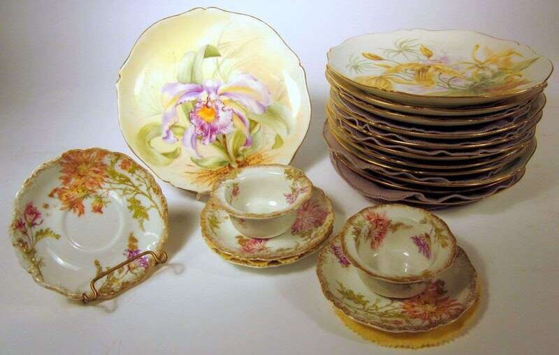 Set of twelve Limoges floral painted porcelain salad plates early 20th century