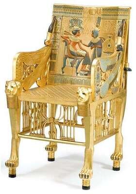Fine Egyptian revival stone inlaid and polychrome decorated giltwood replica of King Tutankhamen's throne chair circa 1928