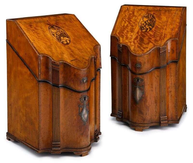 Fine pair of George III satinwood, tulipwood crossbanded and marquetry inlaid knife boxes circa 1770-1780