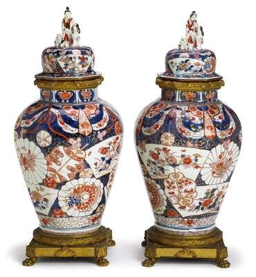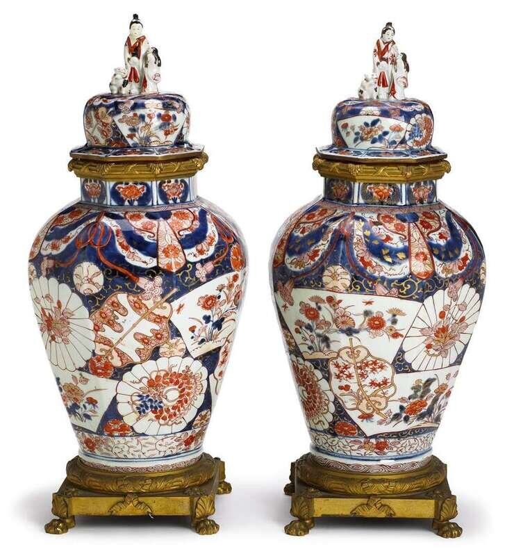 Very fine pair of Japanese imari porcelain covered vases the porcelain circa 1725, the mounts probably 19th century