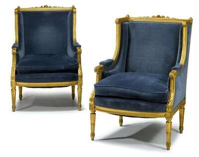 Fine pair of Napoleon III giltwood bergeres a oreilles 19th century