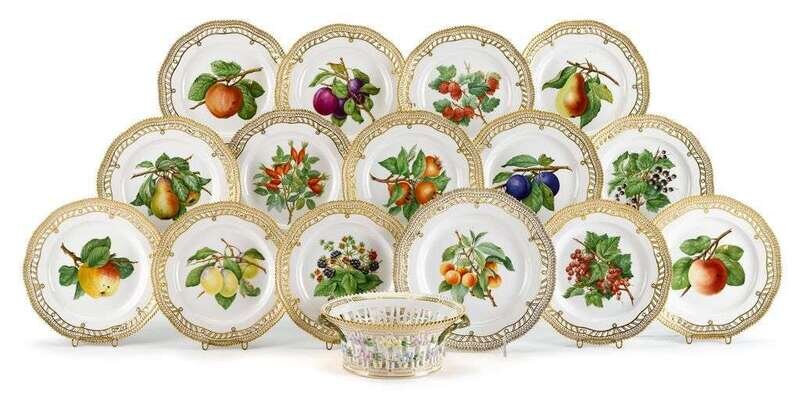 Fourteen Royal Copenhagen Flora Danica porcelain fruit plates 20th century
