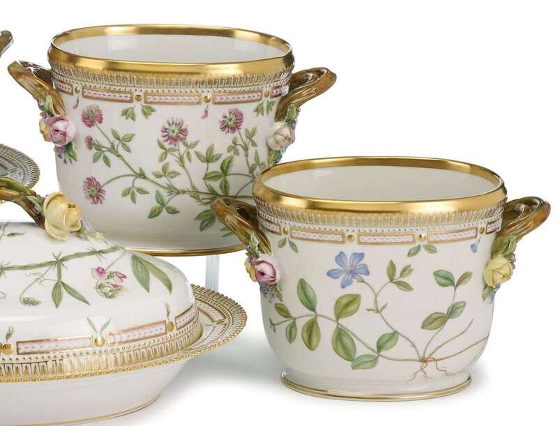 Pair of Royal Copenhagen Flora Danica porcelain cache pots
