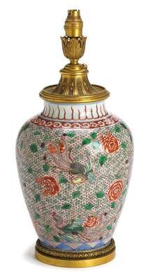The body finely painted to show phoenix and flowers on patterned ground, in later gilt bronze mounts.