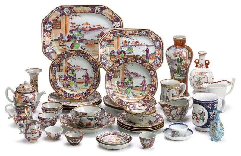 Good collection of Chinese export rose mandarin and fitzhugh porcelain tablewares 18th century