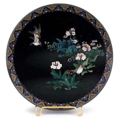 Fine Japanese cloissone enamel shallow dish meiji period, circa 1900, studio of namikawa yasuyuki