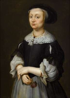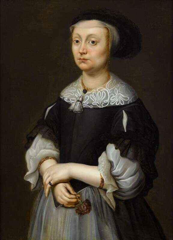 ZEELAND SCHOOL (17TH CENTURY) PORTRAIT OF A LADY HOLDING CARNATION, THREE-QUARTER LENGTH