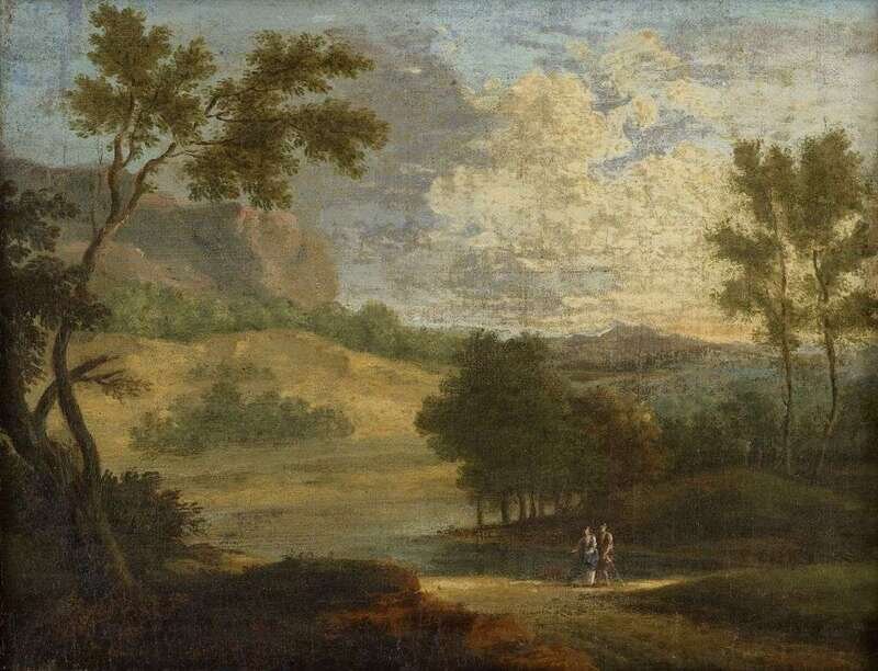 FOLLOWER OF GASPARD DUGHET CALLED 'GASPARD POUSSIN' (FRENCH 1615-1675) TRAVELLERS IN AN ITALIANATE LANDSCAPE