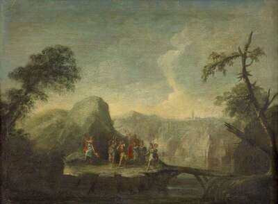 FLEMISH SCHOOL (18TH CENTURY) FIGURAL PROCESSION IN AN EXTENSIVE LANDSCAPE