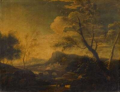 FOLLOWER OF ANTONIO FRANCESCO PERUZZINI (ITALIAN 1668-1724) TRAVELLERS ON A TRACK IN AN EXTENSIVE LANDSCAPE
