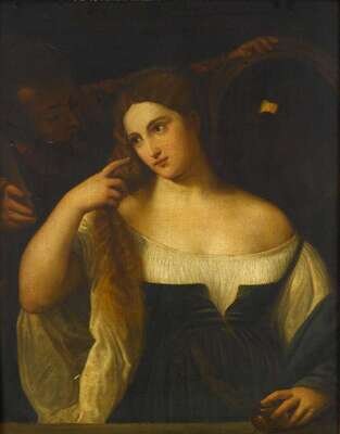 AFTER TITIAN (TIZIANO VECELLI) (ITALIAN BORN CIRCA 1485-1576) A WOMAN WITH A MIRROR