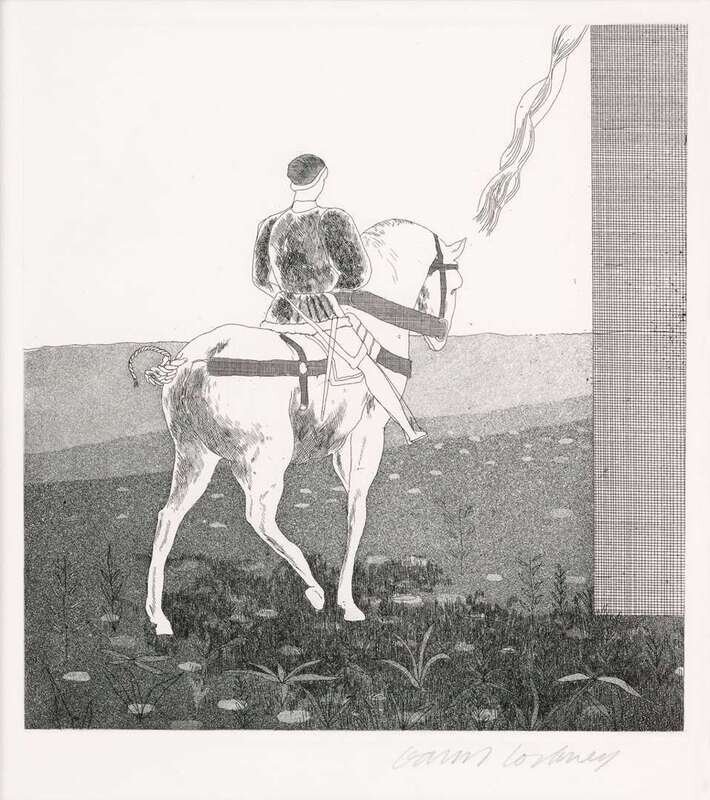 1969, the complete set of 39 etchings, some with aquatint, in- and hors-texte, with title, text and justification, on Hodgkinson wove paper, with the artist's and publisher's initials watermark, signed, inscribed and numbered 33/100 in pencil on the justification, copy 33/100 from Edition A, aside from the edition of one hundred (there were also one hundred copies of the editions B, C, and D with different suites; and a portfolio edition of one hundred with a suite of all plates), published by Petersburg Press, London, 1970, the full sheets, with deckle edges, bound (as issued); with the separate suite of six etchings (two framed separately), each pencil signed, inscribed "Grimm," "Edition A" and numbered in brown ink on the reverse, with full margins, loose (as issued), within the original blue leather binding, separate folder for the suite, and slipcase, with the title and artist's name on the spine.