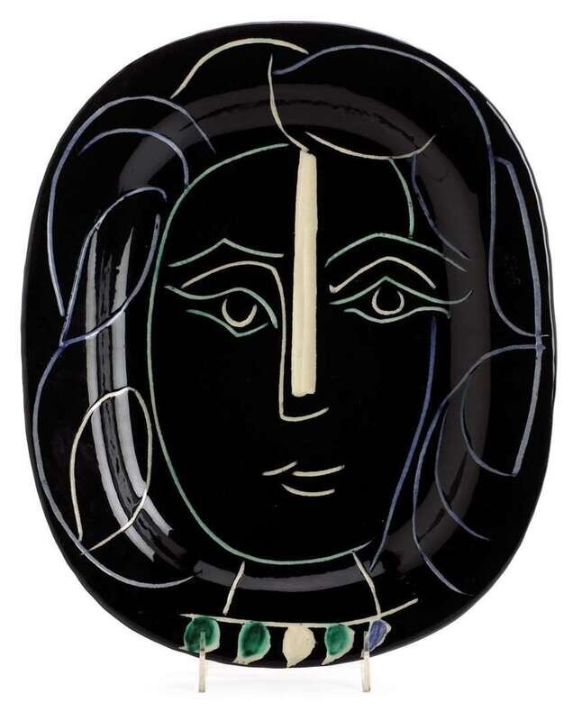 1953, from the edition of 400, with the 'MADOURA PLEIN FEU' and 'EDITION PICASSO' stamps on the underside, glazed ceramic platter painted in colors