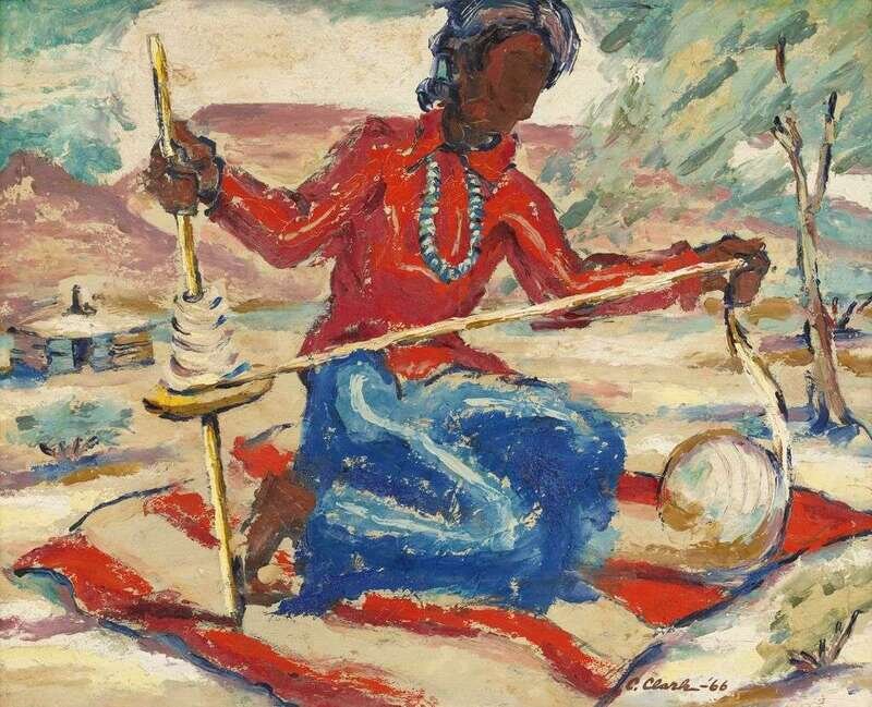 CLAUDE CLARK (AMERICAN 1915-2001) "SPINNING THE WOOL"