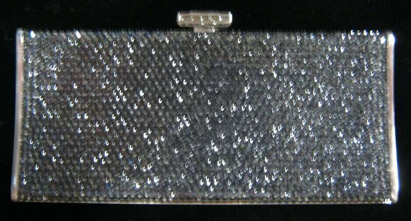 Silver tone charcoal crystal minaudiere, Judith Leiber