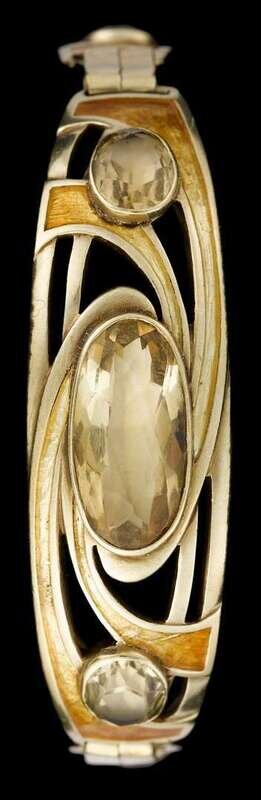 Art Nouveau yellow gold, citrine and enamel bracelet