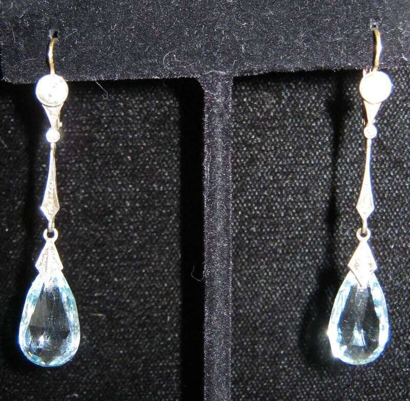 Yellow gold, diamond and aquamarine drop earrings