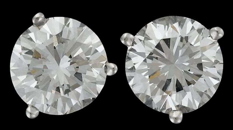 Each round brilliant cut diamond approximately 1 carat, prong set with pierced screw backings.