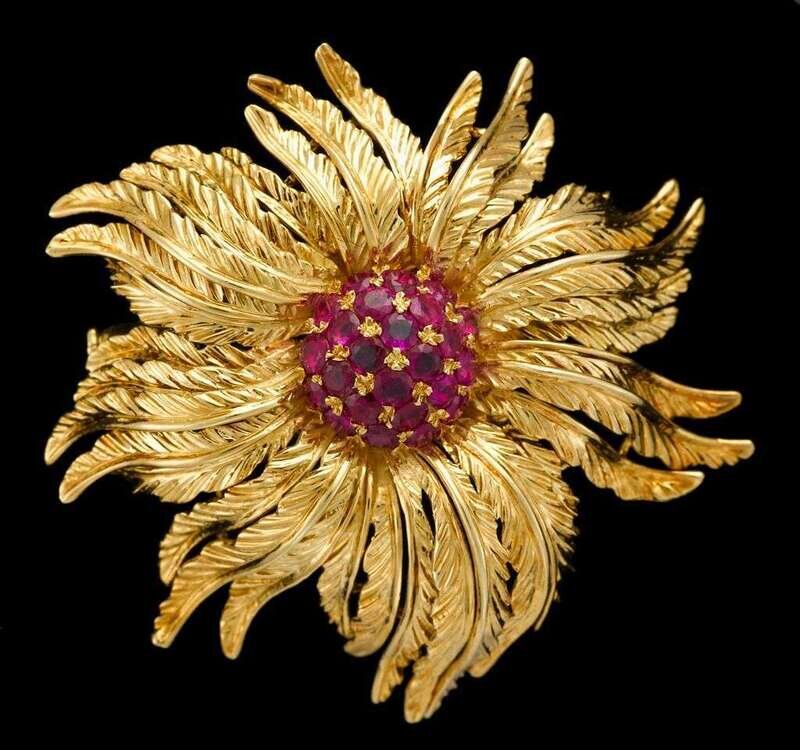 18 karat yellow gold and ruby flower brooch, Tiffany & Co.