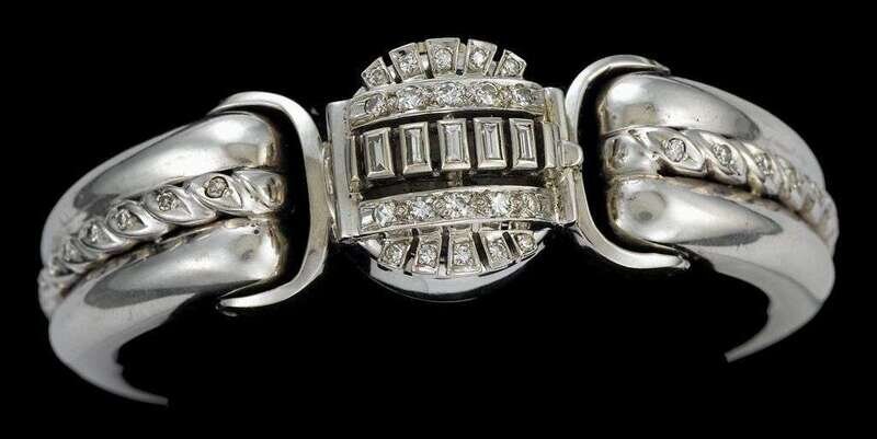 Retro 14 karat white gold and diamond dinner watch, Lucien Piccard