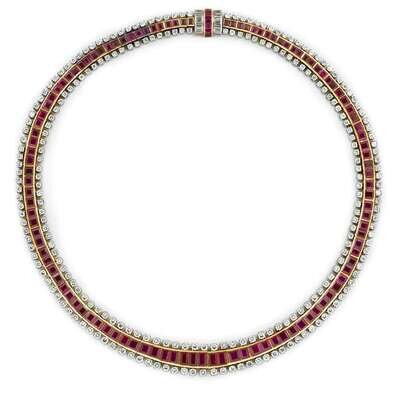 Impressive platinum, yellow gold, ruby and diamond necklace, Cartier 1940s, London