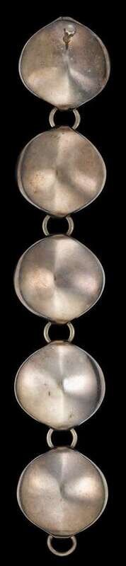 Abstract link bracelet, Georg Jensen. Earrings of similar design, unsigned. Accompanied by Jensen pouch.