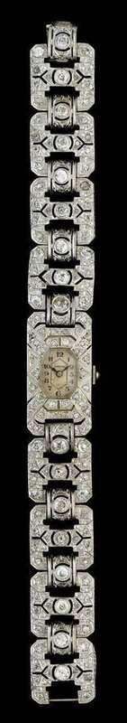 Art Deco lady's platinum and diamond dinner watch, Vulcain