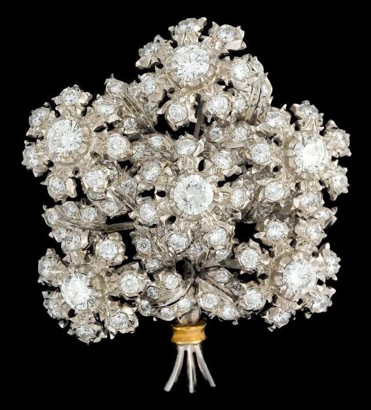 Featuring six 'blooms' with veri sized petals, accented by round cut diamonds, signed 'Federico Buccellati', total diamond weight approximately 4.30 carats. Accompanied by original gift box.