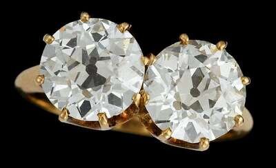 Double Old Mine cut diamonds, each weighing approximately 1.85 carats, basket setting.