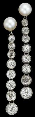 Pearl and diamond drop earrings