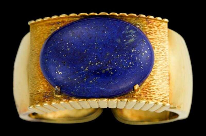Oval cabochon lapis, hinged cuff, signed by the maker.