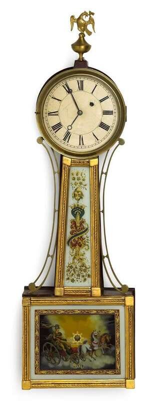 Mahogany and parcel gilt banjo clock new england, circa 1815