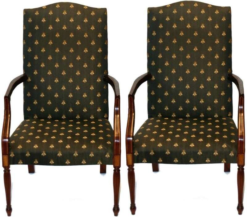Pair of Federal-style inlaid mahogany lolling armchairs 20th century