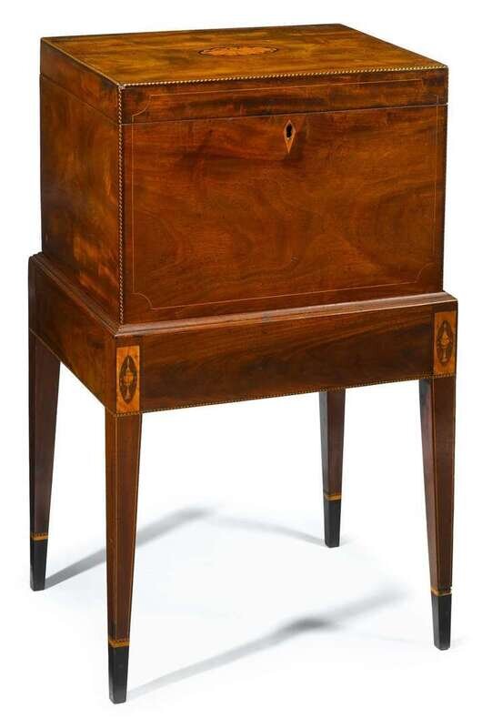 Federal mahogany inlaid cellarette on stand maryland, circa 1800 and later