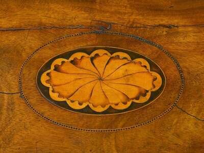 The hinged box with shell inlay to lid, opening to a fitted interior, on stand with urn inlaid corners.