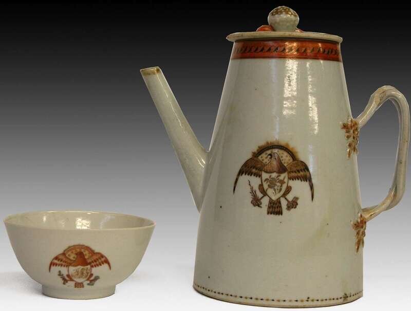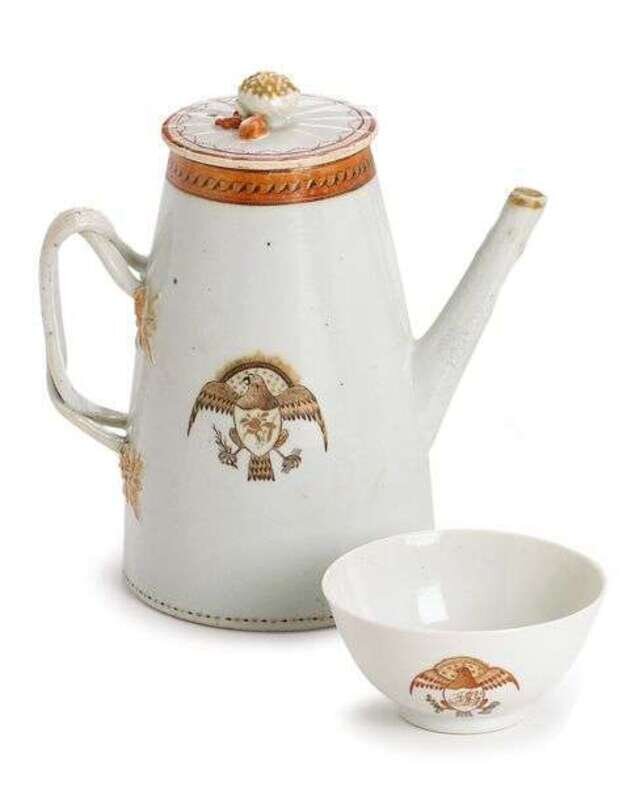 Chinese Export porcelain eagle-decorated coffee pot circa 1800