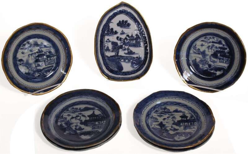 Seven Chinese Export porcelain Canton items 19th century