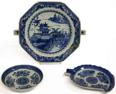 Three blue and white Chinese Export porcelain items 19th century
